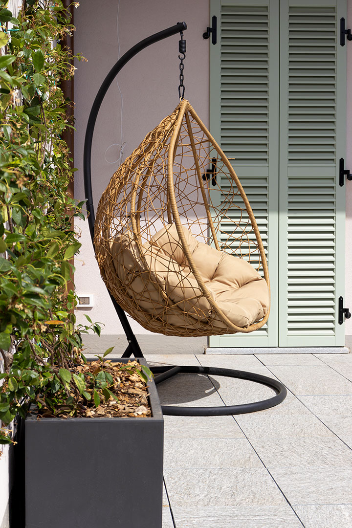 I terrazzi, per un totale di circa 90 mq, rappresentano una vera estensione dell’abitazione e ampliano in modo significativo la qualità dell’abitare quotidiano. Non sono semplici spazi esterni, ma ambienti progettati con la stessa attenzione riservata agli interni.
